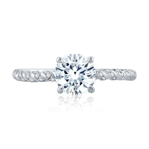 This solitaire engagement ring features a tight twist shank, a round center stone, and the A.JAFFE Signature Shank.