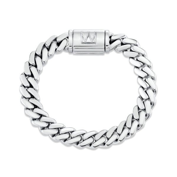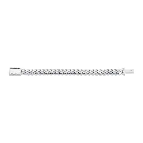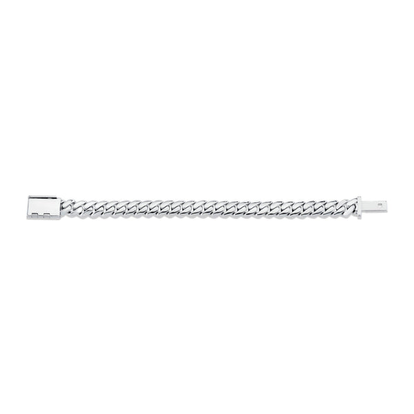 This Men's Cuban Chain Bracelet showcases an 10mm wide Miami Cuban link design, delivering a striking yet elegant appearance. Offered in 7.5", 8", and 8.5" lengths, it fits comfortably on the wrist, making it suitable for both everyday and formal occasions. The bracelet features a custom box clasp for secure wear and a polished look. Its enduring design and robust build make it a perfect choice for those who value a blend of durability and style. Whether worn solo or layered, this chain brings a refined edge to any ensemble.