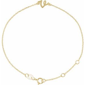 14K Yellow Initial V 6 1/2-7 1/2" Bracelet