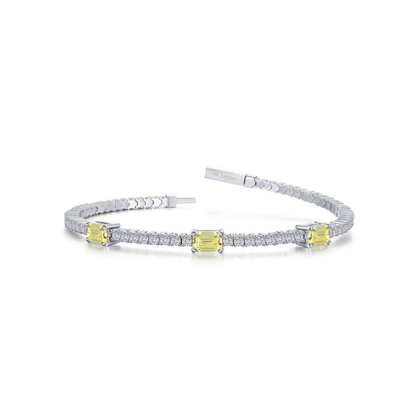 Constructed with comfort and glamor in mind, this flexible station tennis bracelet features emerald-cut and round Lafonn's signature Lassaire simulated diamonds. The bracelet is set in in sterling silver bonded with platinum.