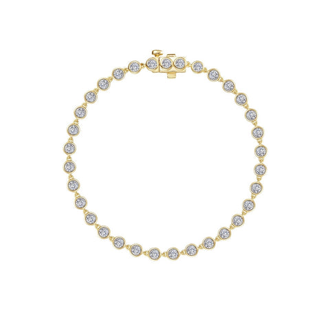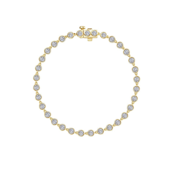 Grace in motion. This bracelet features a series of bezel-set stones, each elegantly linked to create a seamless strand of shimmering light. Set with Lafonn's signature Lassaire simulated diamonds in sterling silver plated with gold.