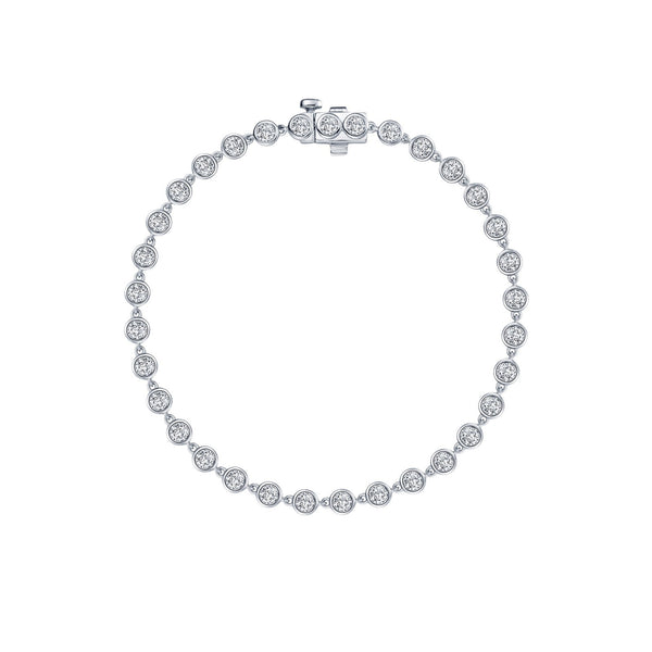 Grace in motion. This bracelet features a series of bezel-set stones, each elegantly linked to create a seamless strand of shimmering light. Set with Lafonn's signature Lassaire simulated diamonds in sterling silver bonded with platinum.