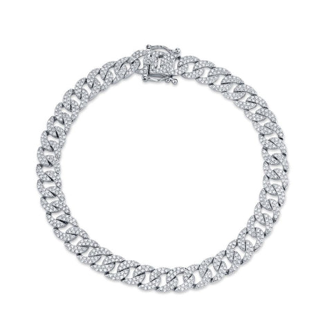 Commanding in presence yet refined in detail, this striking bracelet is crafted in radiant 14k white gold and adorned with 1 5/8ctw of brilliant pavé-set diamonds. Each luminous link is meticulously encrusted with sparkling stones, creating a seamless flow of light that wraps elegantly around the wrist. The intricate craftsmanship and polished finish lend an air of timeless sophistication. Perfect for elevating any ensemble, this diamond pavé link bracelet is the ultimate expression of luxury and modern elegance.