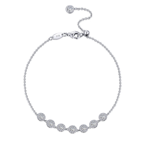 Elegant and timeless. This adjustable 7 Symbols of Joy halo bracelet features Lafonn's signature Lassaire simulated diamonds set in sterling silver bonded with platinum. May the 7 Symbols of Joy bring you Longevity, Health, Love, Happiness, Peace, Prosperity, & Friendship.