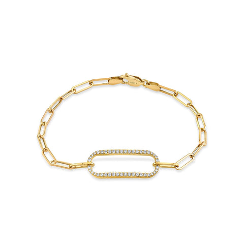 An oversized pavéd flat link brings your everyday bracelet stack up a few notches.