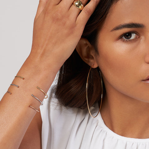 Customize your arm candy by picking and choosing your bangle stack. Add this cuff bangle in 14K yellow gold with 3mm beaded ends to your jewelry box.