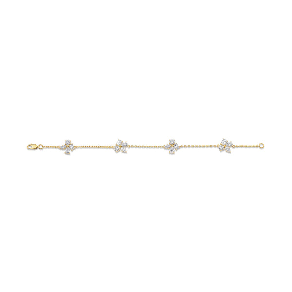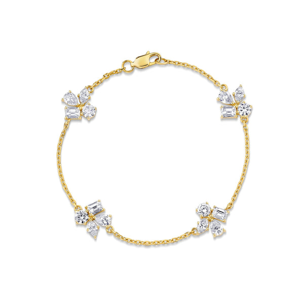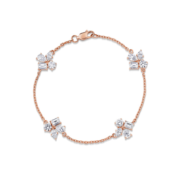 A luxurious, timeless piece of jewelry that combines the intricate beauty of diamonds with the natural flow of organic design. Featuring 4 organically-placed clusters with a variety of diamond shapes on a 3mm wide bangle, this bracelet offers the perfect balance of sophistication and effortless style. With each cluster specifically crafted to reflect the brilliance and uniqueness of each diamond, this bracelet is a must-have for any jewelry collection.