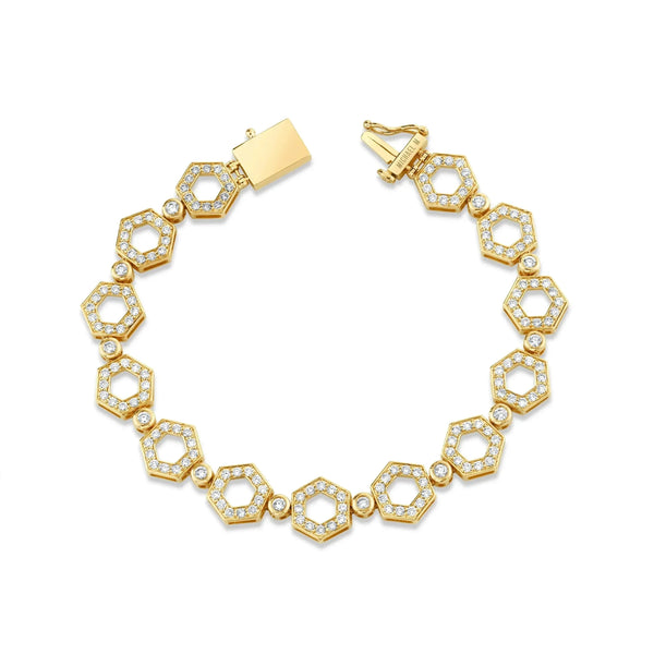 Infinite statement with our Pavé Hex Infinity Bracelet. With 2.58ct of sparkling pavé, the perfectly shaped hexagons are connected by round bezel set diamonds in an articulated design. The repeated shapes and serpentine movement are representative of the most iconic design elements of MICHAEL M.