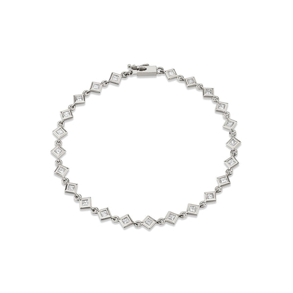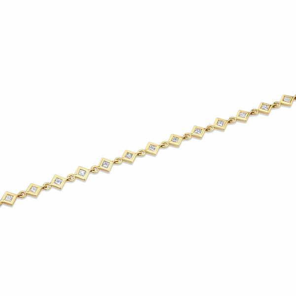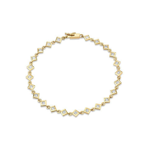 Infinite balance meets fluid movement. The Round Bezel Tennis Bracelet is made up of a series of classic round bezels featuring the MM signature bezel with a wider frame of gold surrounding the diamond for a visually impactful style. Layer it for an even more gratifying effect.