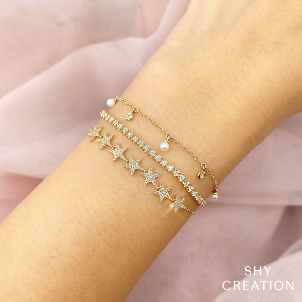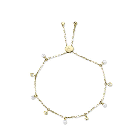 Delicately charming and endlessly graceful, this cultured pearl and diamond bolo bracelet adds a touch of elegance to every gesture. Lustrous cultured pearls dance along the chain beside sparkling diamonds totaling 1/20ctw, creating a soft shimmer against warm 14k yellow gold. The adjustable bolo design allows for a custom, effortless fit on the wrist. Perfect on its own or layered, this piece brings refined radiance to both everyday style and special occasions.
