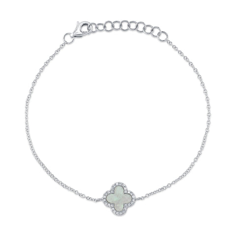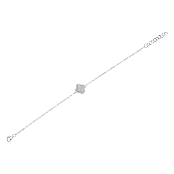 0.07CT DIAMOND & 0.40CT MOTHER OF PEARL 14K W/G CLOVER BRACELET