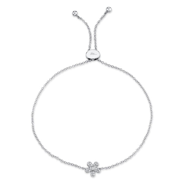 0.07CT 14K W/G DIAMOND BEZEL FLOWER BOLO BRACELET