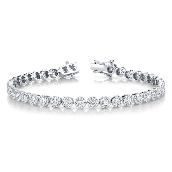 Dazzling with every movement, this 3ctw diamond bracelet showcases a breathtaking stream of round diamonds, each haloed in radiant brilliance for an opulent finish. Crafted in luxurious 14k white gold, it offers a sleek, luminous backdrop that enhances the fire and sparkle of every gemstone. Its timeless tennis-style design drapes elegantly around the wrist, making it an unforgettable statement for both everyday glamour and the most sophisticated occasions. A true classic with irresistible shimmer, it’s the perfect piece to elevate any fine jewelry collection.