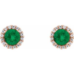 14K Rose 3.5 mm Natural Emerald & 1/10 CTW Natural Diamond Earrings