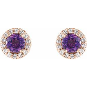 14K Rose 3 mm Natural Amethyst & 1/10 CTW Natural Diamond Earrings