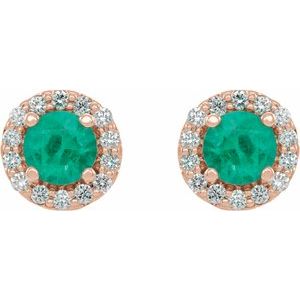 14K Rose 4 mm Natural Emerald & 1/8 CTW Natural Diamond Earrings