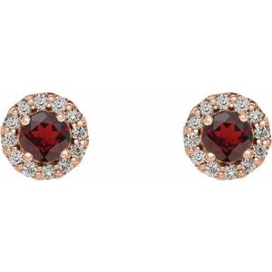 14K Rose 5 mm Natural Mozambique Garnet & 1/8 CTW Natural Diamond Earrings
