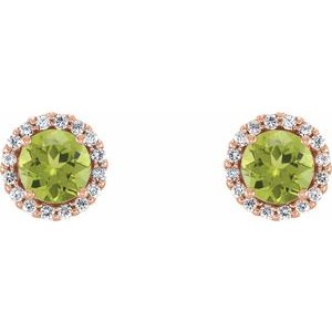 14K Rose 6 mm Natural Peridot & 1/8 CTW Natural Diamond Earrings