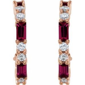 14K Rose Lab-Grown Ruby & 1/2 CTW Natural Diamond 17.2 mm Hoop Earrings
