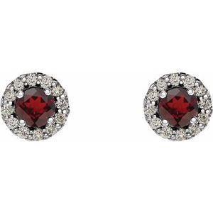 14K White 3.5 mm Natural Mozambique Garnet & 1/10 CTW Natural Diamond Earrings