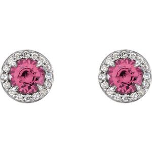 14K White 4.5 mm Natural Pink Tourmaline & 1/6 CTW Natural Diamond Earrings