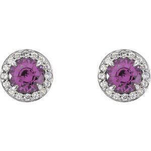 14K White 4 mm Natural Amethyst & 1/10 CTW Natural Diamond Earrings