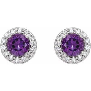 14K White 4 mm Natural Amethyst & 1/8 CTW Natural Diamond Earrings