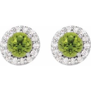14K White 4 mm Natural Peridot & 1/8 CTW Natural Diamond Earrings