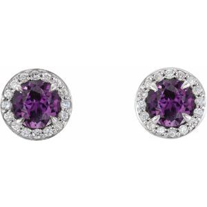 14K White 5 mm Lab-Grown Alexandrite & 1/8 CTW Natural Diamond Earrings