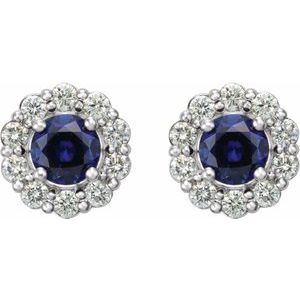 14K White 5 mm Lab-Grown Blue Sapphire & 3/8 CTW Natural Diamond Halo-Style Earrings