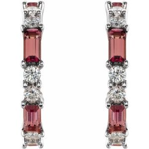 14K White Natural Pink Tourmaline & 1/2 CTW Natural Diamond 17.2 mm Hoop Earrings