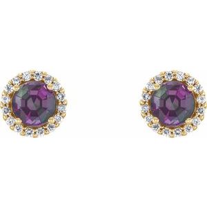 14K Yellow 3.5 mm Lab-Grown Alexandrite & 1/10 CTW Natural Diamond Earrings