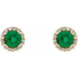 14K Yellow 3.5 mm Natural Emerald & 1/10 CTW Natural Diamond Earrings