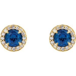 14K Yellow 4.5 mm Natural Blue Sapphire & 1/6 CTW Natural Diamond Earrings