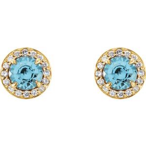 14K Yellow 4 mm Natural Blue Zircon & 1/10 CTW Natural Diamond Earrings