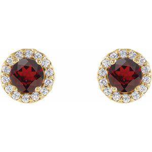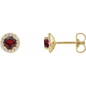 14K Yellow 4 mm Natural Mozambique Garnet & 1/10 CTW Natural Diamond Earrings