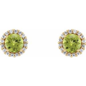 14K Yellow 6 mm Natural Peridot & 1/8 CTW Natural Diamond Earrings