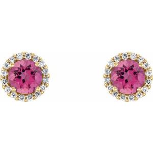 14K Yellow 6 mm Natural Pink Tourmaline & 1/8 CTW Natural Diamond Earrings