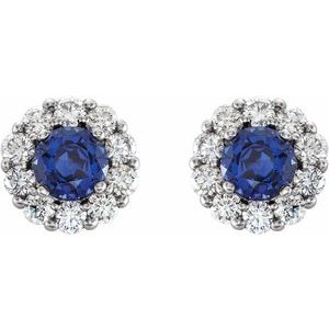 Platinum 6 mm Lab-Grown Blue Sapphire & 1/2 CTW Natural Diamond Halo-Style Earrings