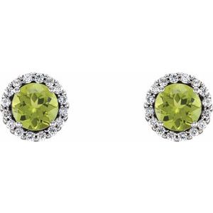 Sterling Silver 4 mm Natural Peridot & 1/10 CTW Natural Diamond Earrings