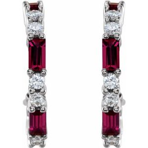 Sterling Silver Lab-Grown Ruby & 1/2 CTW Natural Diamond 17.2 mm Hoop Earrings