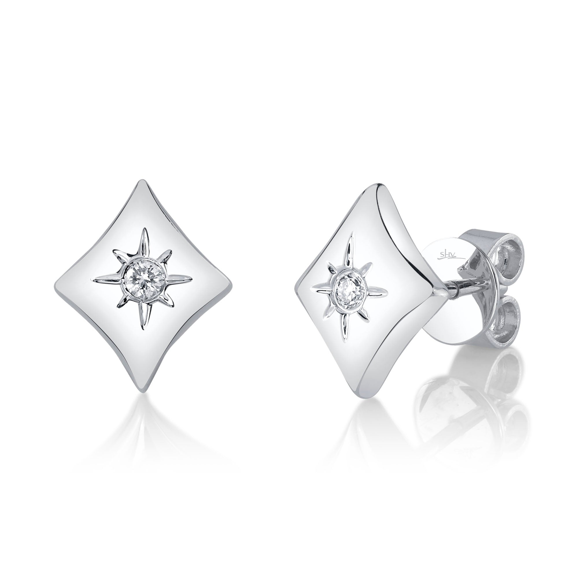 Fun and modern. These V-shaped stud earrings are set with Lafonn's signature Lassaire simulated diamonds in sterling silver bonded with platinum..