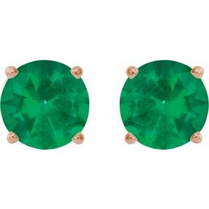 14K Rose 6 mm Lab-Grown Emerald Stud Earrings