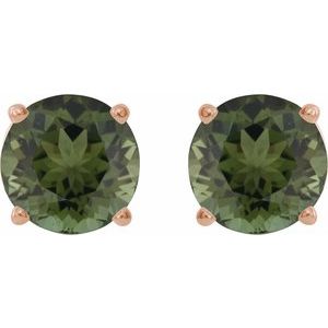 14K Rose 6 mm Natural Green Tourmaline Stud Earrings
