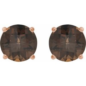 14K Rose 7 mm Natural Smoky Quartz Stud Earrings
