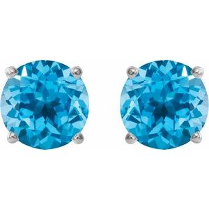 14K White 7 mm Natural Swiss Blue Topaz Stud Earrings