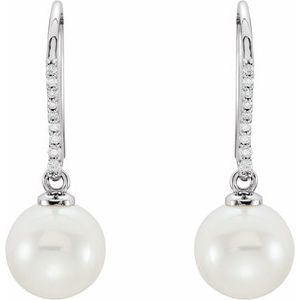 14K White Cultured White Freshwater Pearl & 1/8 CTW Natural Diamond Earrings