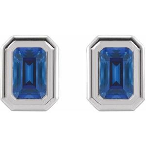 14K White Lab-Grown Blue Sapphire Solitaire Earrings