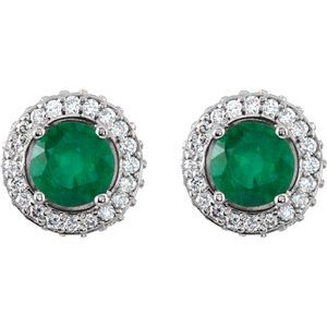 14K White Natural Emerald & 1/3 CTW Natural Diamond Earrings