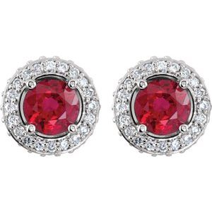 14K White Natural Ruby & 1/3 CTW Natural Diamond Earrings
